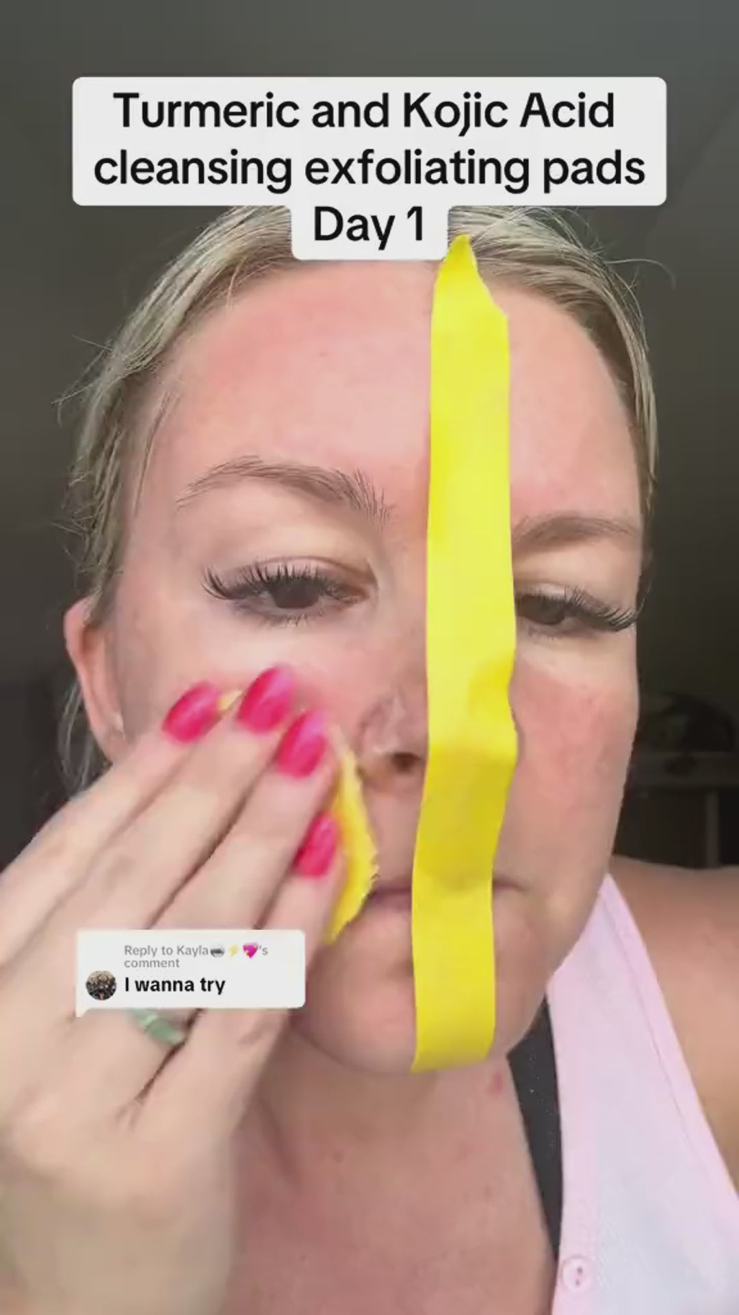 ✔ 1 žingsnis: Po prausimosi švelniai nuvalykite veidą ir kaklą viena pagalvėle, vengdama akių zonos.
